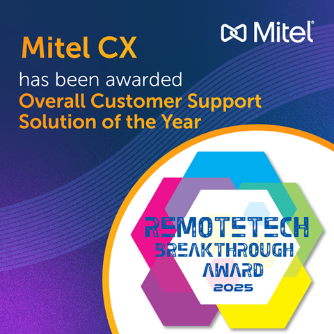 Mitel, a global leader in business communications, today announced that Mitel CX has been selected as “Overall Customer Support Solution of the Year” in the 6th annual RemoteTech Breakthrough Awards program conducted by RemoteTech Breakthrough, a leading independent market intelligence organization that evaluates and recognizes standout technology companies, products and services empowering remote work and distributed teams around the globe.